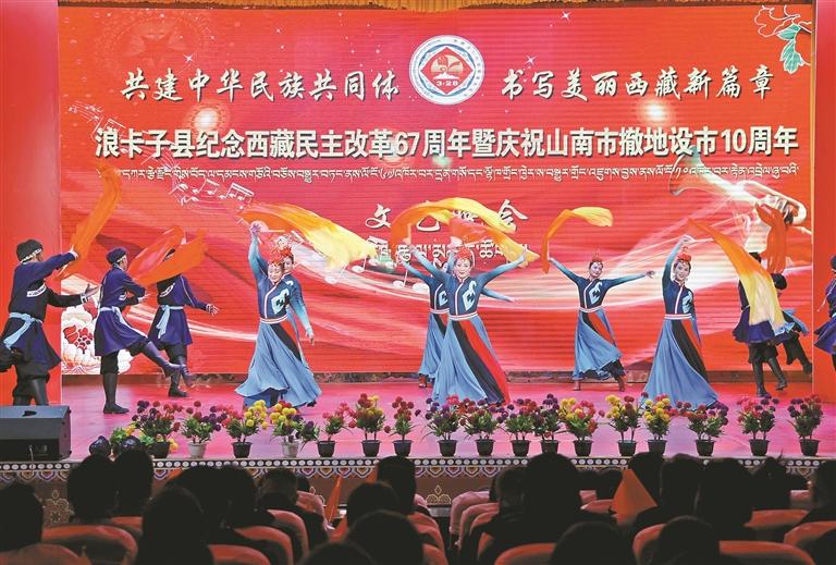 图②:浪卡子县举办纪念西藏民主改革67周年暨庆祝山南市撤地设市10 周年文艺演出活动。