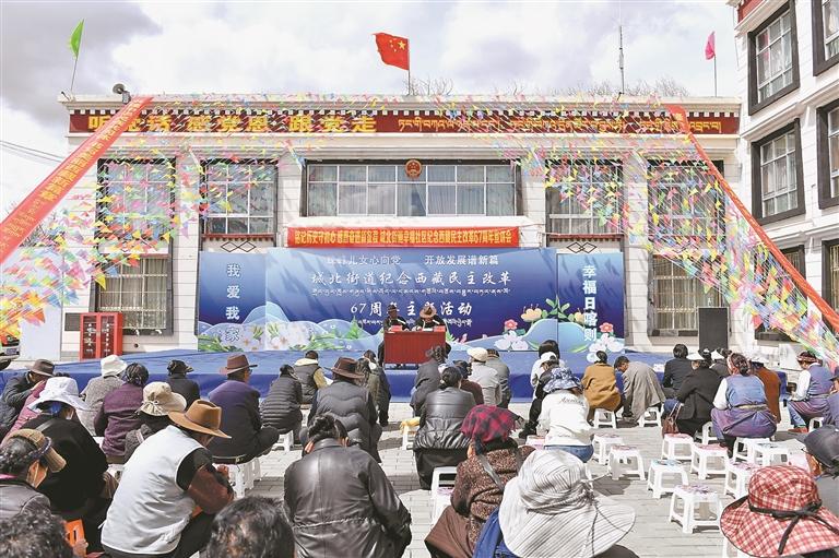 日喀则桑珠孜区城北街道幸福社区开展纪念西藏民主改革67周年宣讲会现场。本报记者 旦增嘎瓦 摄